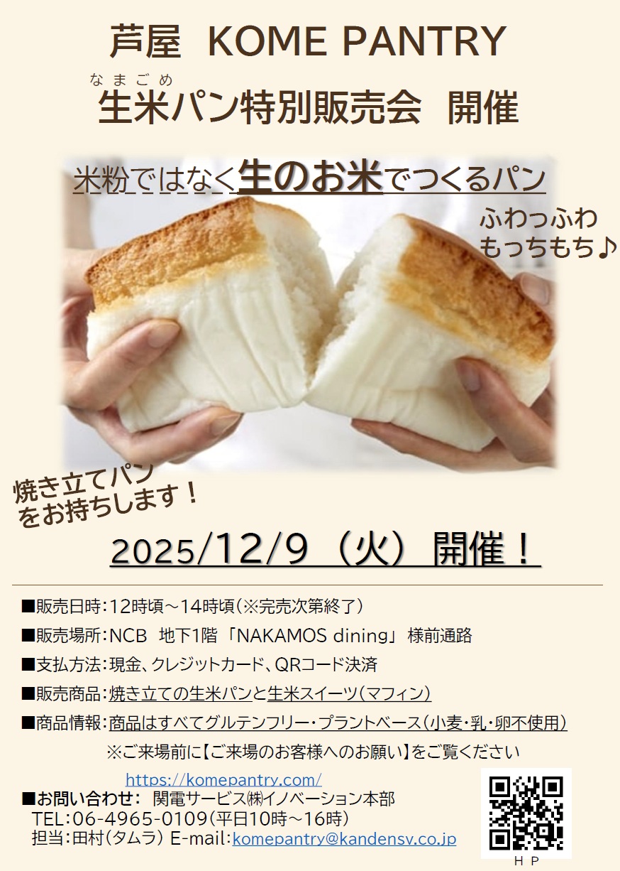 芦屋KOME PANTRY(生米パン)の販売を行います。