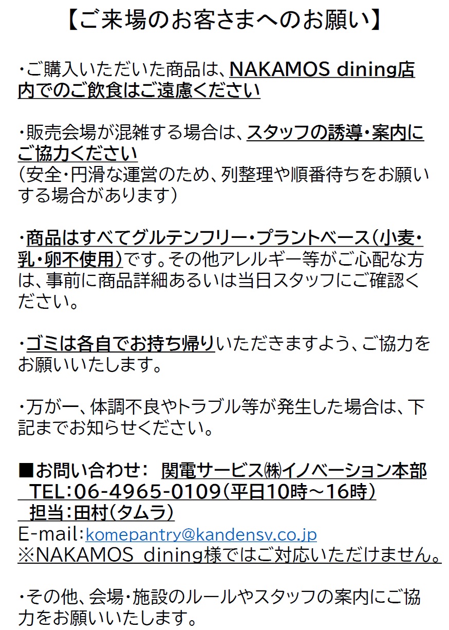 出店場所:地階1階NAKAMOS前 12:00~14:00(完売次第終了)
