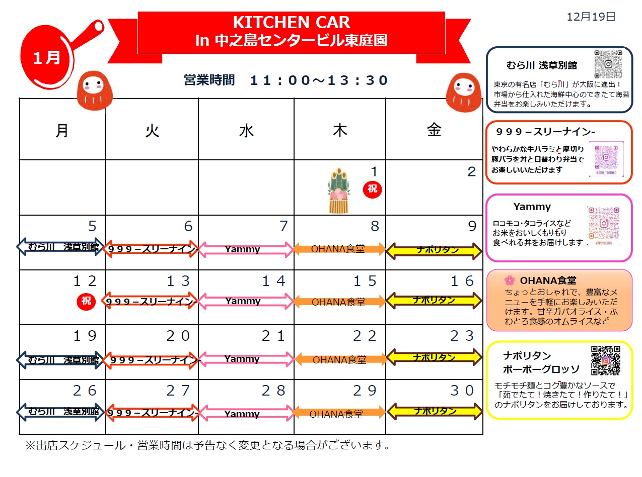 1月のキッチンカーは、下記のとおり東庭園にやってきます。