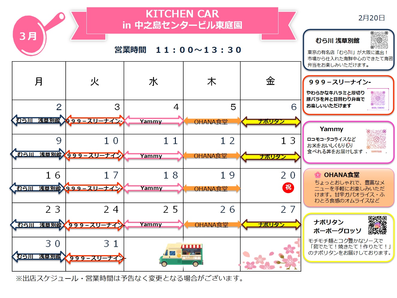 3月のキッチンカーは、下記のとおり東庭園にやってきます。